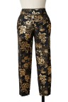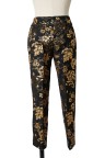 Pantalon en jacquard noir et or avec passementeries accordées sur les côtés