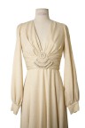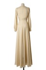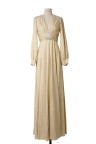 Robe longue en lurex doré. Décolleté orné d'un bijou pavé de perles et de strass