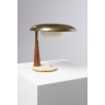Angelo Lelii (1915-1987) Lampe de table Laiton, cuir, aluminium laqué et verre Édition Arredoluce Modèle créé vers 1956 H 29 × Ø 35 cm Bibliographie : Arredoluce, Catalogue Raisonné, Ed. Silvana, modèle reproduit p.171