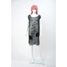ANONYME 1920's ROBE en mousseline de soie noire rebrodée de perles figurant un décor floral Env T S/M Manque fond de robe, quelques nombreux mini accrocs, manque quelques perles