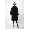 ANONYME 1950's MANTEAU en velours noir à col claudine et poignets à revers, deux poches Env T M Mini marques sur velours