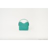 ANONYME SAC-BOÎTE en autruche turquoise Env. 16,5 x 15 x 8,5 cm Traces de colle sur un côté, quelques très légères traces sur cuir, petites taches jaunes