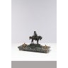 Antoine Louis BARYE (1795-1875) Encrier double au piqueux en tenue louis XV, sur une base en marbre vert de mer. Le groupe en bronze patiné signé sur la terrasse et marqué "F Barbedienne Fondeur Paris" H25 x L39 x P17 cm