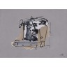 Encre de Chine, crayon, tissu et collage, contrecollé sur carton