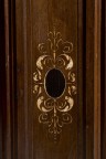 Armoire en deux corps avec corps supérieuren retrait en noyer avec incrustations de pâte