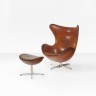 Arne Jacobsen (1902-1971) Egg Fauteuil et repose pied Cuir et aluminium Édition Fritz Hansen Date de création : 1958 H 105 × L 85 × P 63 cm ; H 42 × L 55 × P 40 cm