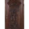 Armoire rectangulaire ouvrant à une porte en bois mouluré et sculpté à décor dans le goût Renaissance. La porte figurant Henri IV dans un encadrement architecturé sommé d'un mascaron d'angelot, reposant sur une tête de lion. Les montants à décor de termes à masques féminins et masques de lions se terminant par des griffes. Base architecturée à décor de feuilles d'acanthes, la corniche moulurée à décor de masques de lions et grotesques, surmontée d'un fronton ajourée à décor de chimères.