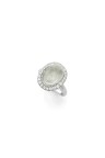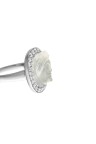 Bague en or blanc 18k (750‰) ornée d'un camée en pierre de lune à visage de femme dans un entourage de diamants taille brillant Signée, numérotée K5HR76 Tdd : 52 Poids brut : 7,1 g