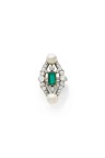 ajouré sertie de diamants ronds de taille ancienne, au centre d'une émeraude rectangulaire et deux perles probablement fines aux extrémités Travail des années 1880-90 Tdd : 54 Poids brut : 12,1 g