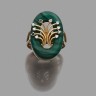 Bague en or 14k (585‰) de forme ovale, sertie d'un anneau en malachite, en applique un motif en fils d'or rehaussé de diamants taill...