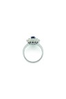 Bague en or blanc 18k (750‰) orné d'un saphir ovale facetté dans un double entourage de diamants de taille brillant