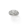 Bague en or gris 18k (750‰) ornée de trois diamants taille ancienne dont un plus important au centre. Tdd : 53 Poids brut : 6,6 g