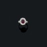 Bague en or gris 18 k (750°/oo) ornée au centre d'un rubis ovale dans un entourage de petits diamants ronds et d'un filet d'onyx. (Léger manque à l'onyx). Tour de doigt : 57 Poids brut : 9,3 g Poids estimé du rubis : 7.00 à 8.00 carats environ Vendu au profit de l'Ordre de Malte.