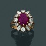 Bague en or jaune 18k (750‰) ornée d'un rubis ovale de 3,23 carats (pierre traitée) dans un entourage de diamants taille baguette et...
