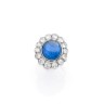 Bague en platine (850‰) et or gris 18k (750‰) ornée d'un saphir cabochon dans un entourage de diamants ronds en serti festonné Tdd :...