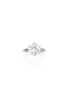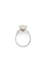 Bague en platine (850‰) sertie d'un diamant rond de taille ancienne d'environ 3,20 cts monté en solitaire, épaulé de trois petits diamants de chaque côté (manque un diamant)