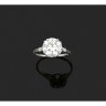 Bague en platine ornée d'un diamant taille brillant monté en solitaire entre deux diamants baguette.