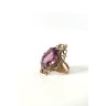 Bague en pomponne de forme ovale ciselée à jours de fleurettes et rinceaux. Ornée d’une pierre taillée à pans. XIXe siècle