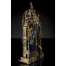 Baiser de Paix en émail peint polychrome dans sa monture en cuivre ciselé, gravé et doré représentant l’Adoration des rois Mages. Plaque de forme cintrée : sur la gauche, Marie présente son Fils nu assis sur ses genoux au Mage le plus âgé qui tient un coffet ouvert ; au second plan, les deux autres rois debout portent une coupe couverte et une pyxide ; la scène est abritée sous le toit d’une étable. Monture gothique flmboyant avec dais ouvragé et ajouré reposant sur des contreforts à colonnettes surmontées de pinacles ; partie supérieure avec candélabre cantonné, à gauche, de saint Jean s’essuyant le visage et tenant dans sa main droite le livre des écritures dans son sac et, à droite, une sainte tenant la palme du martyre ; cabochon de verre à la partie inférieure. Revers à décor losangé surmonté d’un fluron feuillagé ; poignée de préhension moulurée. Limoges, atelier de Nardon Pénicaud, début du XVIe siècle Email : H 9,7 × L 7,2 cm H 18,5 × L 9,7 cm (totale) (deux légers manques en bordure) Provenance : Ancienne collection Piet-Lataudrie Ancienne collection Georges Salles Vente Paris, Hôtel Drouot, Etude Audap, 15 juin 1992, lot 92. Collection privée, Paris Bibliographie : J.J. Marquet de Vasselot, Les Emaux limousins de la fi du XVe siècle et de la première partie du XVIe, Paris, 1921, n°97, pp 116-117 et 267-268.