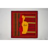 BALENCIAGA CARRÉ en twill polyester imprimé rouge, bouton d'or et noir à figurant le flacon de parfum Rumba