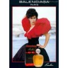 BALENCIAGA CARRÉ en twill polyester imprimé rouge, bouton d'or et noir à figurant le flacon de parfum Rumba Env. 85 x 85 cm Iconographie : droits réservés