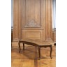 Banquette cannée incurvée en bois naturel mouluré et sculpté, pieds cambrés. Style Louis XV H 44 ×L 141 ×P 41 cm