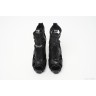 BARBARA BUI PAIRE de BOTTINES ouvertes et ajourées en cuir noir partiellement tressé, petites plateformes intérieures