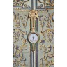 Baromètre en bois sculpté doré et laqué vert à décor de panier fleuri. Epoque Louis XVI