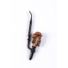 Belle pipe folklorique en buis clair sculpté représentant un personnage barbu au chapeau. Yeux en verre. Tuyau n corne noir tourné. Alpes du sud.