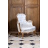 Bergère en bois naturel mouluré et sculpté à décor de fleurettes, pieds cambrés. Style Louis XV H 85×L 65×P 54cm