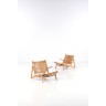 Børge Mogensen (1914-1972) Modèle Hunting easy chairs Paire de fauteuils Edition Ehard Rasmussen Chêne et cuir Date de création : 1950 H66×L70×P89cm Bibliographie : "40 years of Danish Furniture Design" Grete Jalk, The Copenhagen Cabinet- maker's Guild Exhibition, Lindhardt og Ringhof, 2017, tome 3, pp. 155, 156, 157
