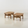 Borge Mogensen (1914-1972) Paire de tabourets Bois et cannage Edition Fredricia Stolefabrik Etiquette Date de création : vers 1950 H 36 × L 69 × P 46 cm