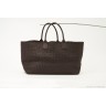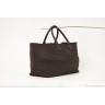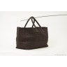 CABAS XXL en cuir "Intrecciato" marron parsemé de mini clous canon de fusil, pochette intérieure en cuir lisse