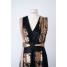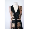 BOTTEGA VENETA ROBE DU SOIR en crêpe de soie nude et rose fluo, polyester noir et triacétate façonné damier, effet d'enduction mordorée T. 38 it Quelques mini fils tirés au bas de la jupe