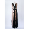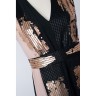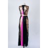 BOTTEGA VENETA ROBE DU SOIR en crêpe de soie nude et rose fluo, polyester noir et triacétate façonné damier, effet d'enduction mordorée