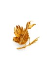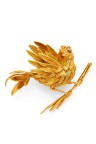 Années 1955-1960 Broche "Oiseau sur une branche" en or jaune 18k (750‰) très finement ciselé, un rubis rond pour figurer l'oeil Signé, numéroté 19443, poinçon de Maître Orfèvre et poinçon de titre Dimensions : 3,5 x 4 cm Poids brut: 15,7g