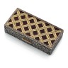 Boîte rectangulaire en argent à décor de feuillages. Le dessus à riche décor vannerie, est en or jaune 18k (750‰) partiellement émaillé, ainsi que le poussoir.