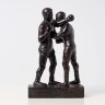 Boxeurs Sculpture en tilleul patiné H 24 × L 14 × P 7 cm "Pièce singulière de ma collection : couple de boxeurs taillés dans le bois."