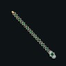 Bracelet articulé en argent et or jaune 14 k (585°/oo). composé de cinq maillons losangiques, chacun orné d'une émeraude cabochon dans un entourage de diamants de taille ancienne, alternés de motifs ronds ajourés, sertis de petits diamants. Le fermoir serti d'une émeraude cabochon entre deux diamants de taille ancienne, l'ensemble dans un entourage de petits diamants. Saint-Petersbourg XIXe siècle. Longueur : 18,5 cm Poids brut : 33,5 g Poids approximatif de l'émeraude principale : 0.60/0.80 carat Poids approximatif des deux diamants principaux : 1.60/1.90 carat Dans un écrin "A la vielle Russie"