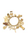 Bracelet en or 9K (375‰) orné de 13 charms (lanterne, voiture ancienne, fer à cheval, médaille religieuse, vase, guitare, cheval, croix, aiguière, la tour de Londres, fer à cheval, charrue, lanterne)