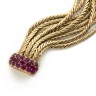 Bracelet en or jaune 14k (585‰) composé de neuf brins de chaîne palmier réunis par un fermoir bombé serti de rubis ronds Longueur : 19 cm Poids brut : 62,7 g