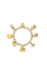 Bracelet en or jaune 9k (375‰) retenant sept charms (Jaguar, machine à écrire, Westie, maison, bateau, couronne, cabine téléphonique), fermoir en forme de cadenas coeur