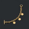 Bracelet en or jaune 18k (750‰) maille "Chaîne d'ancre" fermoir bâtonnet retenant 3 médailles (coeur, trèfle à quatre feuilles et fer à cheval)