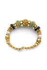 Bracelet flexible d'inspiration indienne en or jaune 18k (750‰) ajouré orné de boules d'or, d'émeraude, de saphir et de perles de culture