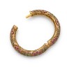 Bracelet jonc ouvrant en vermeil ajouré, rehaussé d'émeraudes, rubis et petites perles probablement fines Travail indien