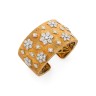 Bracelet manchette ouvrant en or jaune 18k (750‰) brossé à décor de flocons de neige sertis de diamants ronds Gravé 18k Italy