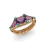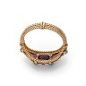 Bracelet ouvrant en or 14k (585‰) tressé orné au centre d'une importante améthyste rectangulaire entre deux améthystes fer de lance, rehaussé de turquoises et de diamants