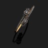 Bracelet rigide ouvrant en or jaune 18 k (750°/oo) et argent, décoré de deux motifs "fleurs" ornés de diamants taillés en rose, celui du centre plus important de taille ancienne. Travail français du XIXe siècle. Diamètre intérieur : 6 cm Poids brut : 18 g (Numéroté 3168).