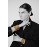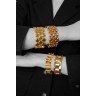 Bracelet ruban souple en or jaune 18k (750‰) composé de trois lignes de pastilles Dimensions : 18 x 3,4 cm Poids : 87 g