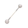 Broche barrette en platine (850‰) ornée de diamants ronds de taille ancienne et de deux perles fines bouton